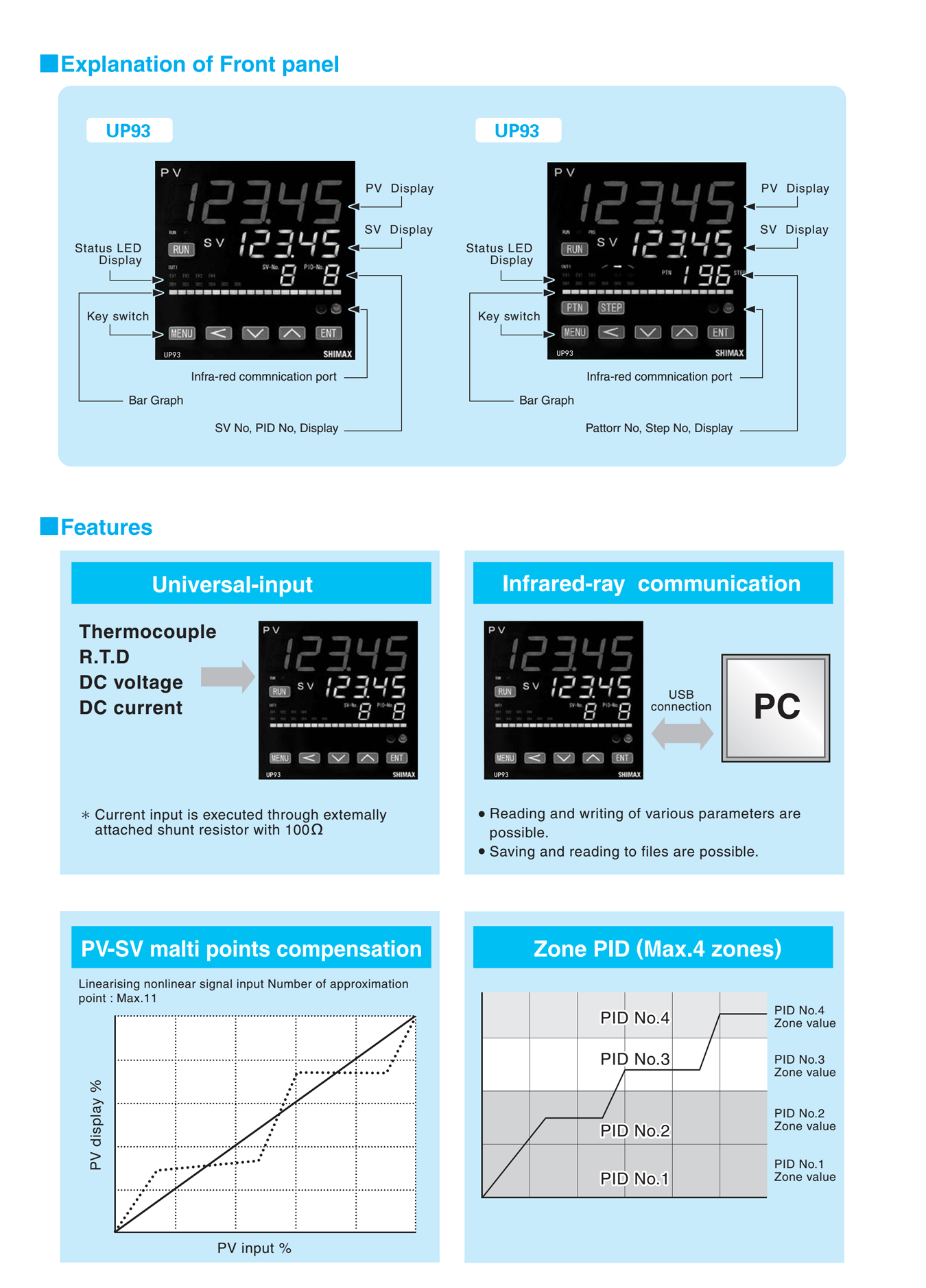 96-step program curve(Can be grouped) /MAX 4zone PID control / Thermostatic control |