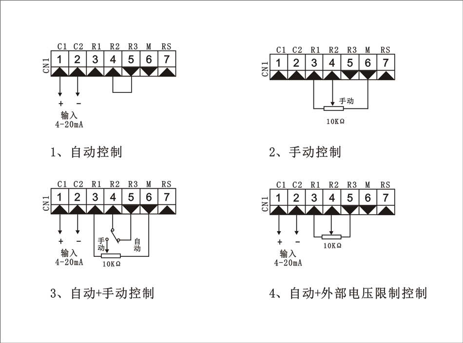 4~20mA 或者0-10V DC输入, 接收阻抗100Ω |